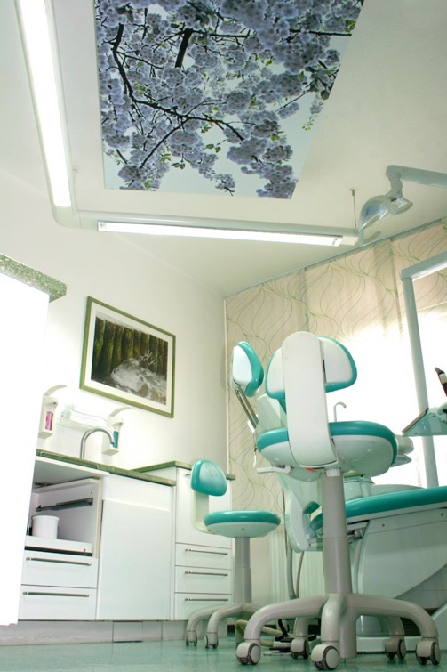 Bilder, die aus der Perspektive der im Behandlungsstuhl liegenden Patienten,